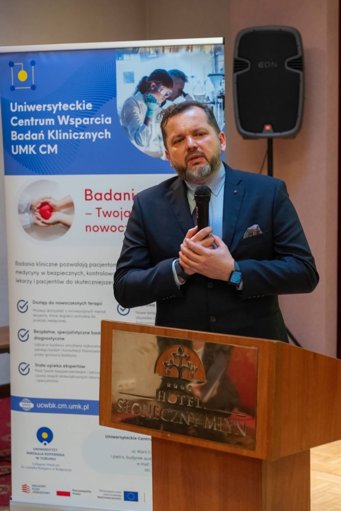 Konferencję otworzył prof. dr hab. Dariusz Grzanka, Prorektor Collegium Medicum UMK, podkreślając znaczenie rozwijania wysokich standardów jakości w sektorze badań klinicznych. Następnie prof. dr hab. Paweł Zalewski, Dyrektor UCWBK UMK CM, przedstawił doświadczenia Centrum oraz wyzwania towarzyszące organizacji badań klinicznych w środowisku akademickim.